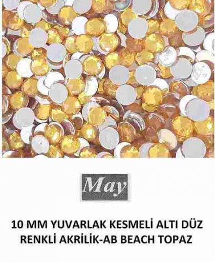 10 MM YUVARLAK KESMELİ ALTI DÜZ RENKLİ AKRİLİK-AB BEACH TOPAZ