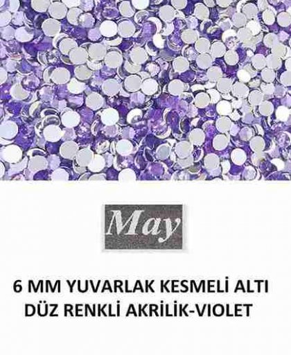 6 MM YUVARLAK KESMELİ ALTI DÜZ RENKLİ AKRİLİK-VIOLET