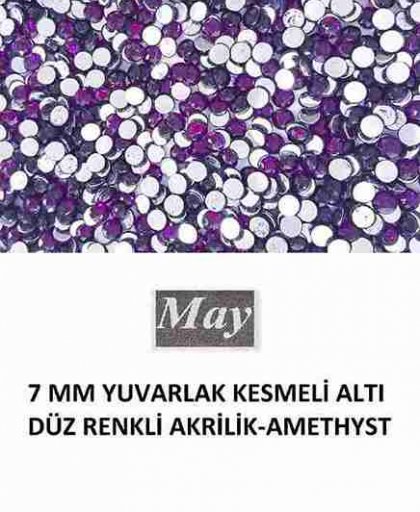 7 MM YUVARLAK KESMELİ ALTI DÜZ RENKLİ AKRİLİK-AMETHYST