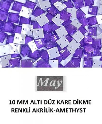 10 MM ALTI DÜZ KARE DİKME RENKLİ AKRİLİK-AMETHYST