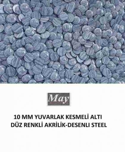 10 MM YUVARLAK KESMELİ ALTI DÜZ RENKLİ AKRİLİK-DESENLI STEEL