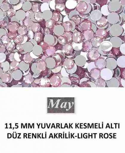 11,5 MM YUVARLAK KESMELİ ALTI DÜZ RENKLİ AKRİLİK-LIGHT ROSE