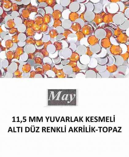 11,5 MM YUVARLAK KESMELİ ALTI DÜZ RENKLİ AKRİLİK-TOPAZ