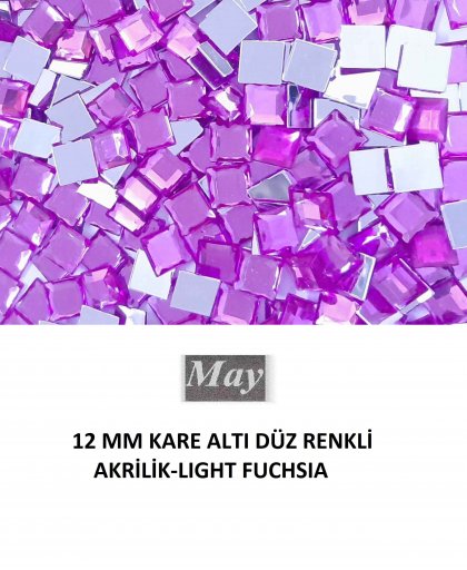12 MM KARE ALTI DÜZ RENKLİ AKRİLİK-LIGHT FUCHSIA