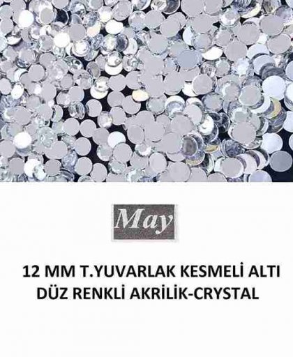 12 MM T.YUVARLAK KESMELİ ALTI DÜZ RENKLİ AKRİLİK-CRYSTAL