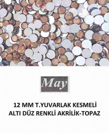 12 MM T.YUVARLAK KESMELİ ALTI DÜZ RENKLİ AKRİLİK-TOPAZ