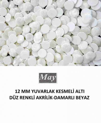 12 MM YUVARLAK KESMELİ ALTI DÜZ RENKLİ AKRİLİK-DAMARLI BEYAZ