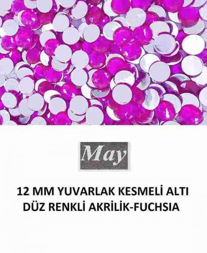 12 MM YUVARLAK KESMELİ ALTI DÜZ RENKLİ AKRİLİK-FUCHSIA