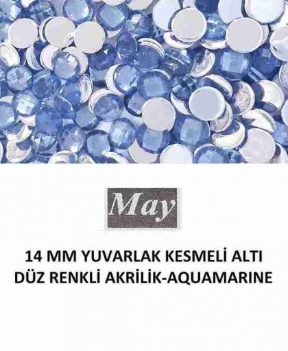 14 MM YUVARLAK KESMELİ ALTI DÜZ RENKLİ AKRİLİK-AQUAMARINE