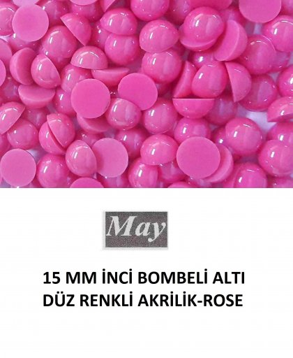 15 MM İNCİ BOMBELİ ALTI DÜZ RENKLİ AKRİLİK-ROSE