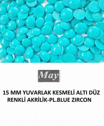 15 MM YUVARLAK KESMELİ ALTI DÜZ RENKLİ AKRİLİK-PL.BLUE ZIRCON