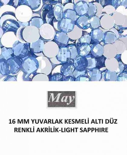 16 MM YUVARLAK KESMELİ ALTI DÜZ RENKLİ AKRİLİK-LIGHT SAPPHIRE