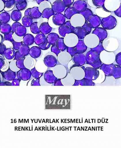 16 MM YUVARLAK KESMELİ ALTI DÜZ RENKLİ AKRİLİK-LIGHT TANZANITE