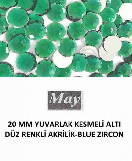20 MM YUVARLAK KESMELİ ALTI DÜZ RENKLİ AKRİLİK-BLUE ZIRCON