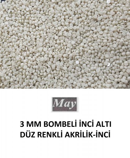 3 MM BOMBELİ İNCİ ALTI DÜZ RENKLİ AKRİLİK-İNCİ