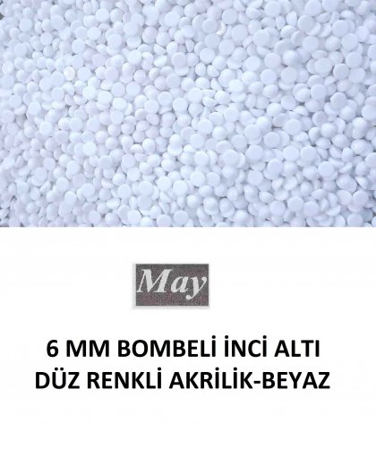 6 MM BOMBELİ İNCİ ALTI DÜZ RENKLİ AKRİLİK-BEYAZ