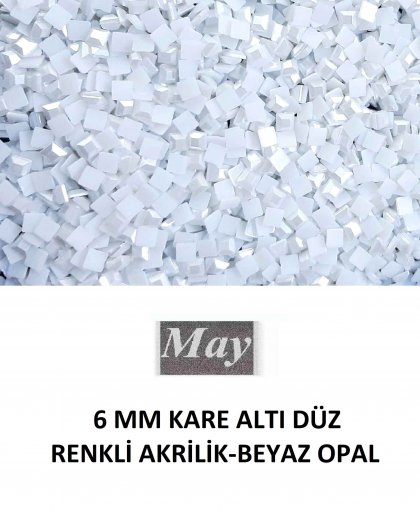 6 MM KARE ALTI DÜZ RENKLİ AKRİLİK-BEYAZ OPAL