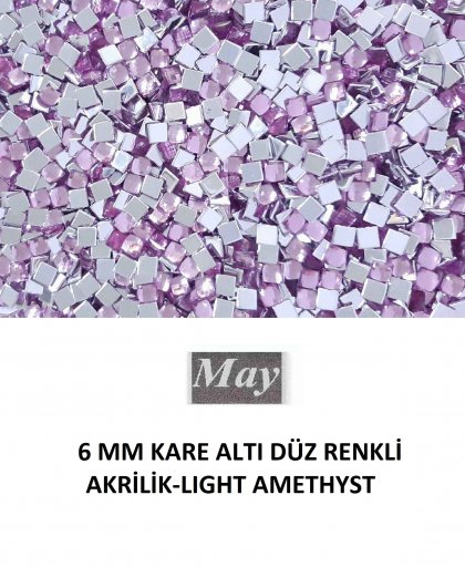 6 MM KARE ALTI DÜZ RENKLİ AKRİLİK-LIGHT AMETHYST