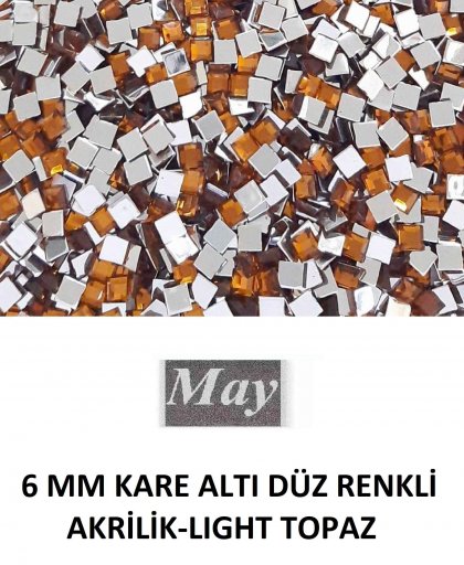 6 MM KARE ALTI DÜZ RENKLİ AKRİLİK-LIGHT TOPAZ