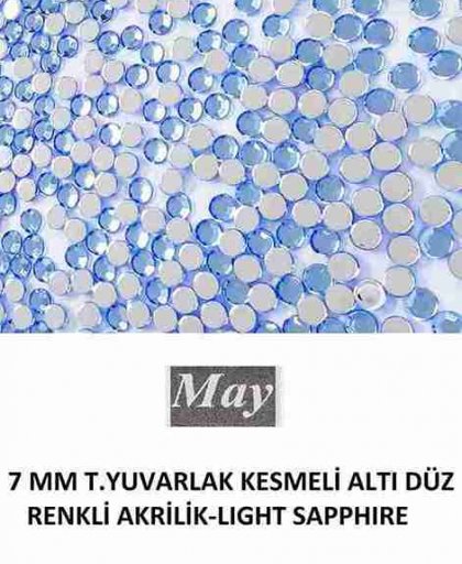 7 MM T.YUVARLAK KESMELİ ALTI DÜZ RENKLİ AKRİLİK-LIGHT SAPPHIRE