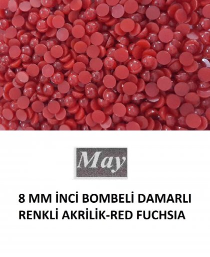 8 MM İNCİ BOMBELİ DAMARLI RENKLİ AKRİLİK-RED FUCHSIA