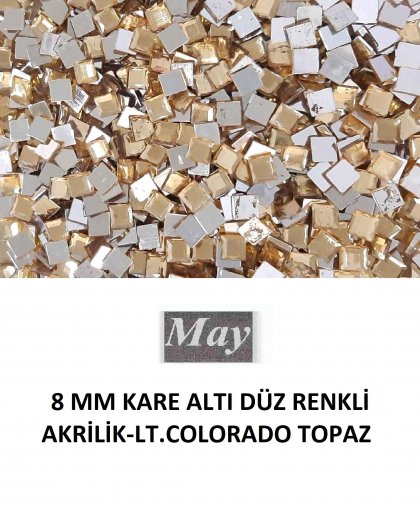 8 MM KARE ALTI DÜZ RENKLİ AKRİLİK-LT.COLORADO TOPAZ