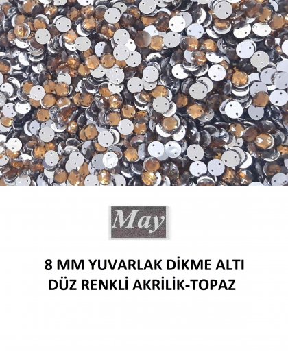 8 MM YUVARLAK DİKME ALTI DÜZ RENKLİ AKRİLİK-TOPAZ