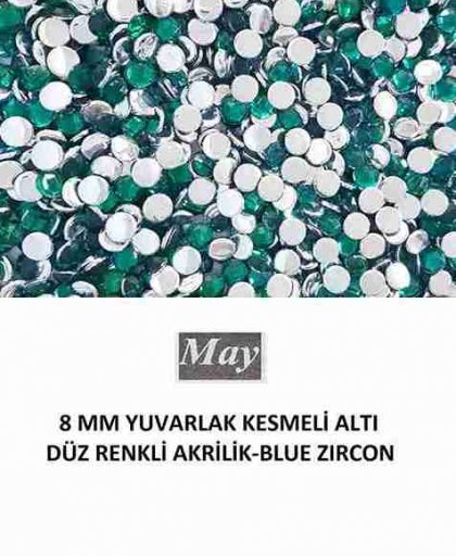 8 MM YUVARLAK KESMELİ ALTI DÜZ RENKLİ AKRİLİK-BLUE ZIRCON