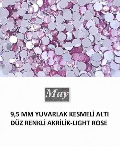 9,5 MM YUVARLAK KESMELİ ALTI DÜZ RENKLİ AKRİLİK-LIGHT ROSE