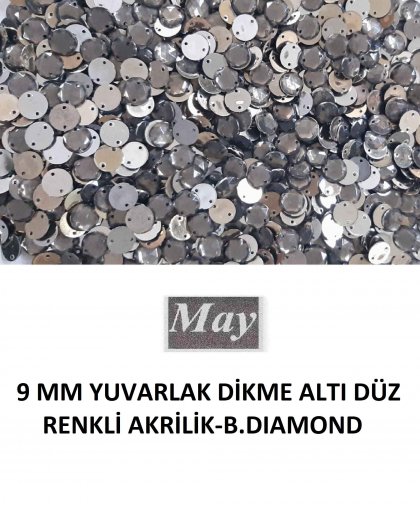9 MM YUVARLAK DİKME ALTI DÜZ RENKLİ AKRİLİK-B.DIAMOND