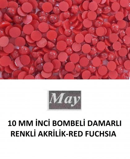 10 MM İNCİ BOMBELİ DAMARLI RENKLİ AKRİLİK-RED FUCHSIA