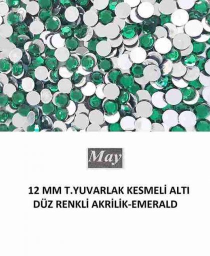 12 MM T.YUVARLAK KESMELİ ALTI DÜZ RENKLİ AKRİLİK-EMERALD