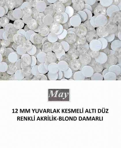 12 MM YUVARLAK KESMELİ ALTI DÜZ RENKLİ AKRİLİK-BLOND DAMARLI