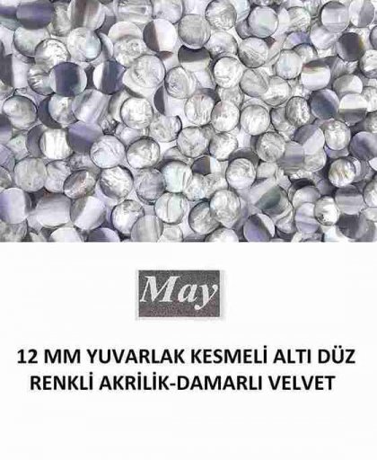 12 MM YUVARLAK KESMELİ ALTI DÜZ RENKLİ AKRİLİK-DAMARLI VELVET