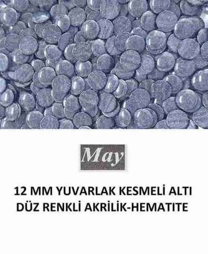 12 MM YUVARLAK KESMELİ ALTI DÜZ RENKLİ AKRİLİK-HEMATITE