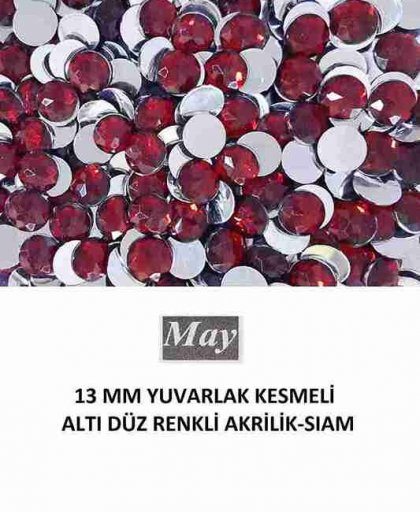 13 MM YUVARLAK KESMELİ ALTI DÜZ RENKLİ AKRİLİK-SIAM