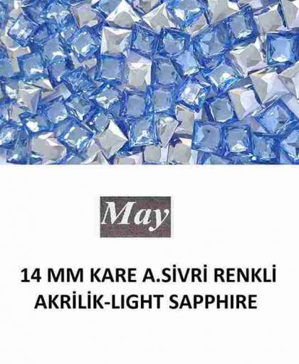 14 MM KARE ALTI SİVRİ RENKLİ AKRİLİK-LIGHT SAPPHIRE
