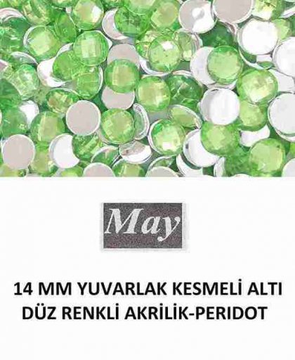 14 MM YUVARLAK KESMELİ ALTI DÜZ RENKLİ AKRİLİK-PERIDOT