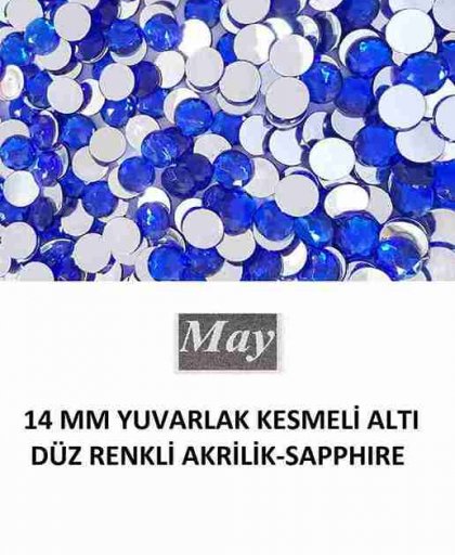 14 MM YUVARLAK KESMELİ ALTI DÜZ RENKLİ AKRİLİK-SAPPHIRE