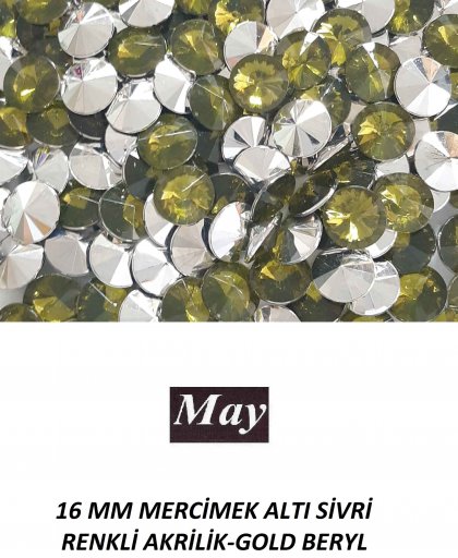16 MM MERCİMEK ALTI SİVRİ RENKLİ AKRİLİK-GOLD BERYL