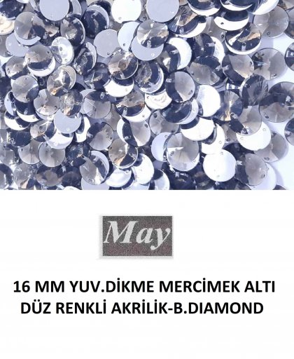 16 MM YUV.DİKME MERCİMEK ALTI DÜZ RENKLİ AKRİLİK-B.DIAMOND