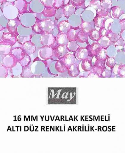 16 MM YUVARLAK KESMELİ ALTI DÜZ RENKLİ AKRİLİK-ROSE