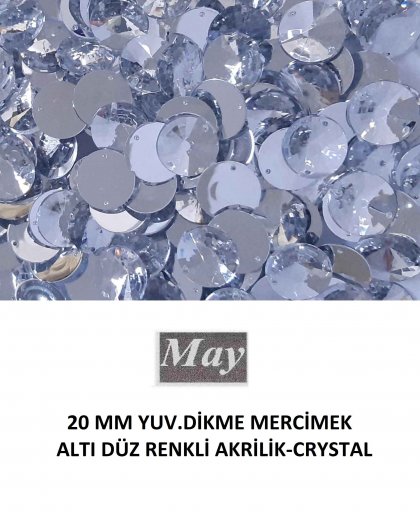 20 MM YUV.DİKME MERCİMEK ALTI DÜZ RENKLİ AKRİLİK-CRYSTAL
