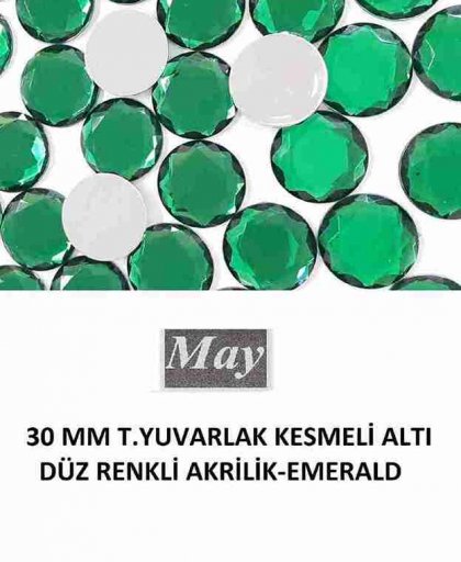 30 MM T.YUVARLAK KESMELİ ALTI DÜZ RENKLİ AKRİLİK-EMERALD