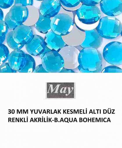 30 MM YUVARLAK KESMELİ ALTI DÜZ RENKLİ AKRİLİK-B.AQUA BOHEMICA