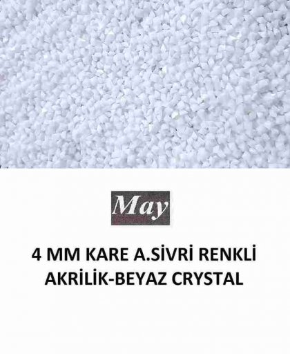 4 MM KARE ALTI SİVRİ RENKLİ AKRİLİK-BEYAZ CRYSTAL