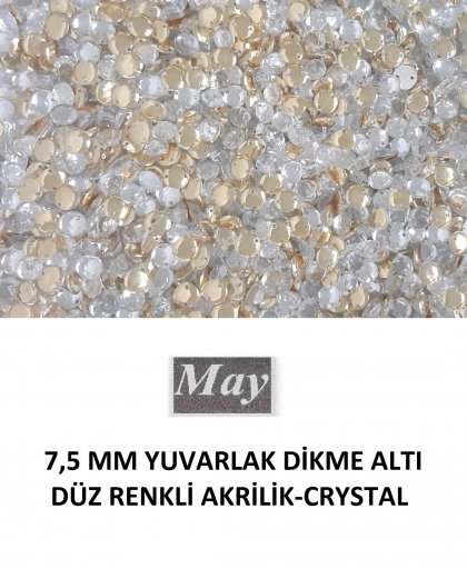 7,5 MM YUVARLAK DİKME ALTI DÜZ RENKLİ AKRİLİK-CRYSTAL