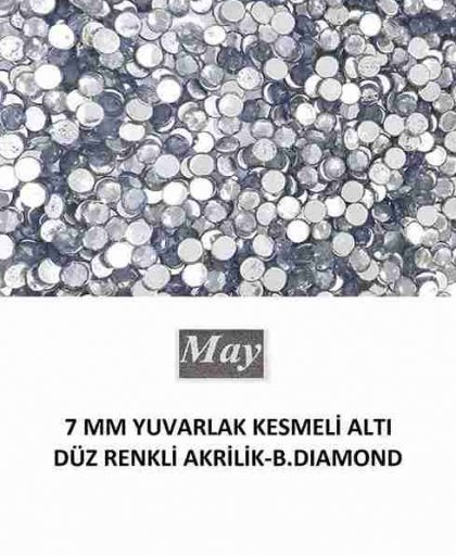 7 MM YUVARLAK KESMELİ ALTI DÜZ RENKLİ AKRİLİK-B.DIAMOND