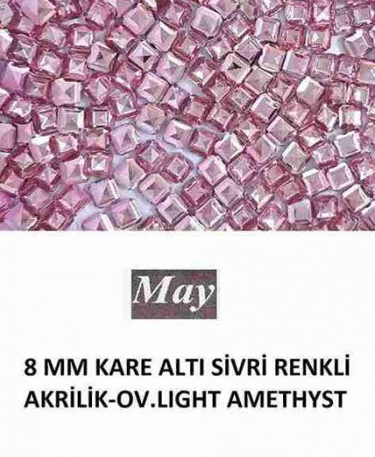 8 MM KARE ALTI SİVRİ RENKLİ AKRİLİK-OV.LIGHT AMETHYST