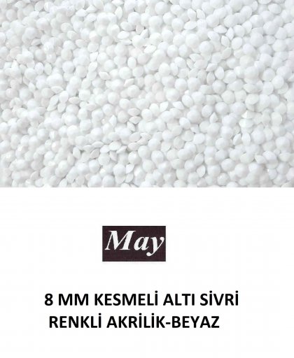 8 MM KESMELİ ALTI SİVRİ RENKLİ AKRİLİK-BEYAZ